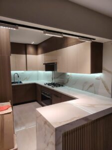 ما يميز “رواق” ليس فقط التصميمات الخارجية، بل العمق التقني في اختيار الخامات. حيث تعتمد الشركة معايير هندسية صارمة في التعامل مع الأخشاب والمسطحات، خاصة في تخصصات المطابخ وغرف الملابس (Dressing Rooms). وتنفرد الشركة بوعي تقني عالي في استخدام مواد متطورة مثل HPL و Poly-lac، مع مراعاة طبيعة كل خامة وقدرتها على تحمل عوامل الوقت والرطوبة، مما يضمن للعميل منتجاً يعيش لسنوات بنفس الرونق.